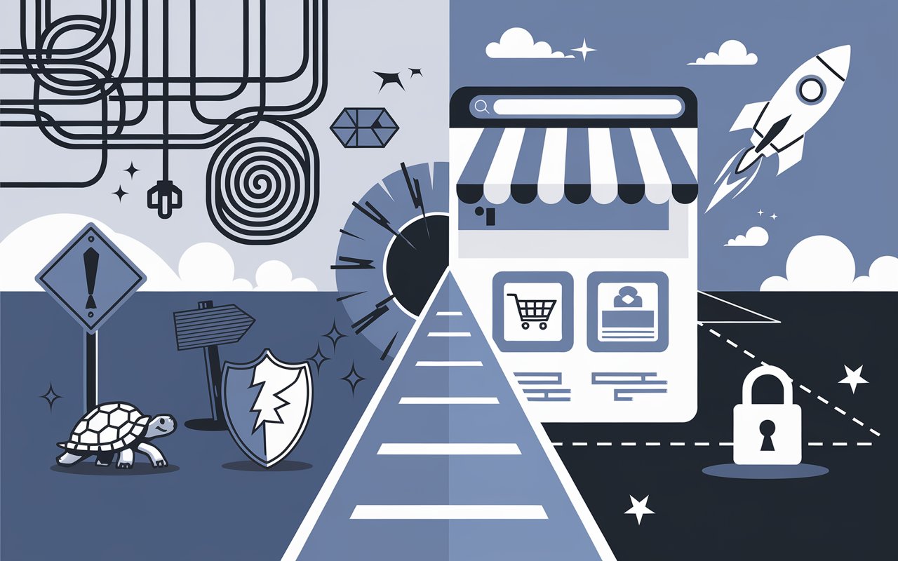 Основные ошибки включают неправильную архитектуру каталога, игнорирование производительности (композитный сайт), ошибки SEO/ЧПУ, проблемы с интеграцией 1С, слабую безопасность и неоптимизированный чекаут.